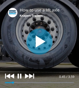 | | | Moving the Future since 1984 | | 2024 is a special year for Knapen Trailers. It's our 40th anniversary! That milestone is certainly a reason to celebrate. We invite you to join us on the "drive of our life". This amazing drive is coloured by your experiences: our valued customers, our enthusiastic dealers, and the passion of our team. | | | | | Lift axles | | Many Knapen moving floor trailers are equipped with a lift axle. An activated lift axle affects the fifth wheel load or turning radius of the trailer. Our new 'how to' video explains the operation of the lift axle in more detail. | | | | | | | Small in volume, big on ease of use | | Knapen Trailers excels in customised solutions, even in a compact format. In partnership with our French dealer Berroyer we engineered this fully equipped lorry for the Mousset group. | | | | | | | | | Maximise your efficiency, no more empty kilometres | The revolutionary and innovative design of the EXSIDE with side doors and no mid post makes its superior to all existing models of moving floor trailers with side doors. A genuine all-rounder: bulk - general cargo - long indivisible loads | Enormous loading width up to 12.9 m | Liftable upper rail creates an impressive 300 mm extra working height | Side doors on the left, right, or both sides | Trialled in the unforgiving Nordic winter | | | | | | | | Knapen Trailers | Postbus 343 5750 AH Deurne, NL Theo van Doesburgstraat, 8 5753DL Deurne, NL | | | | | | | | |